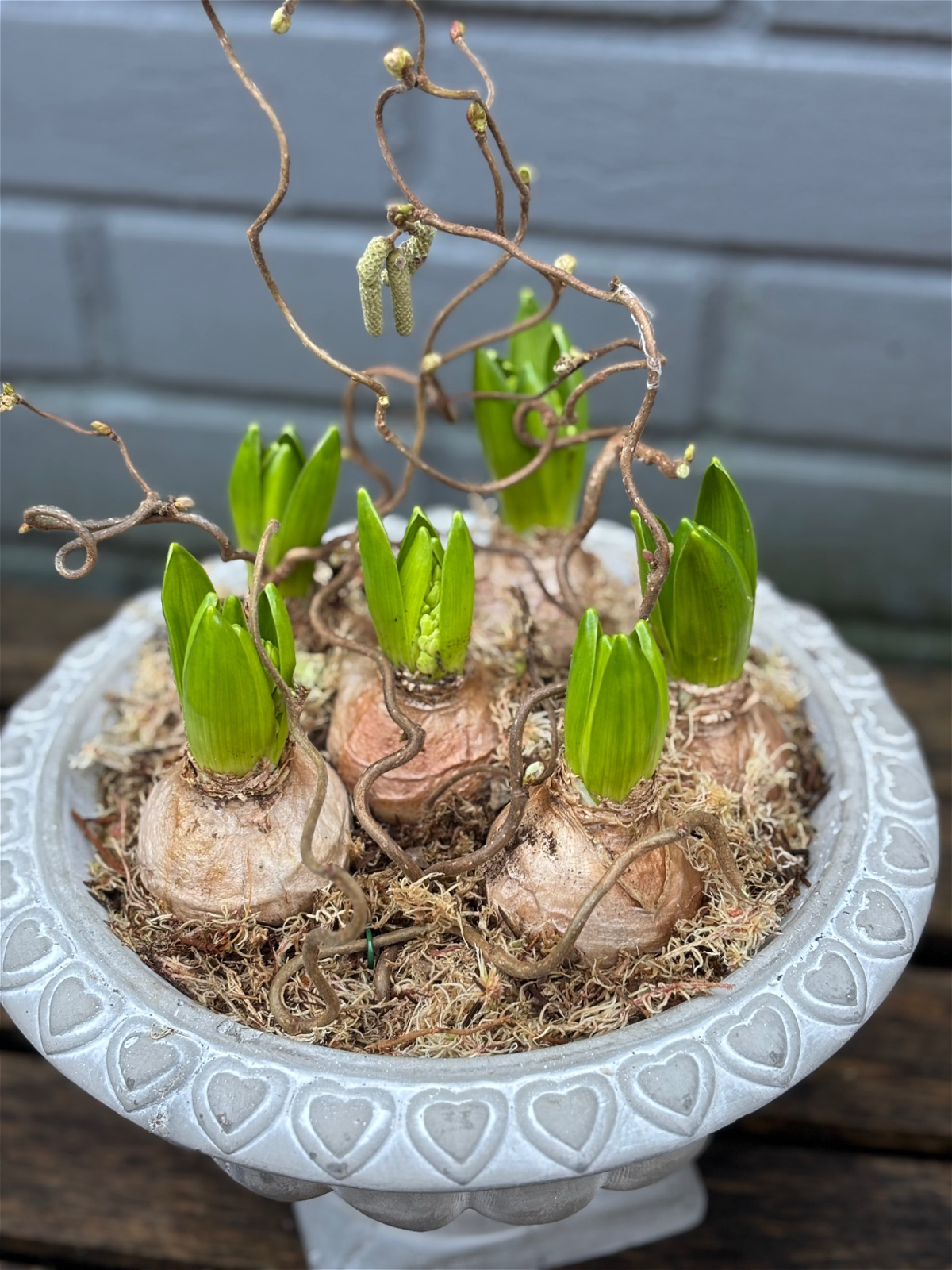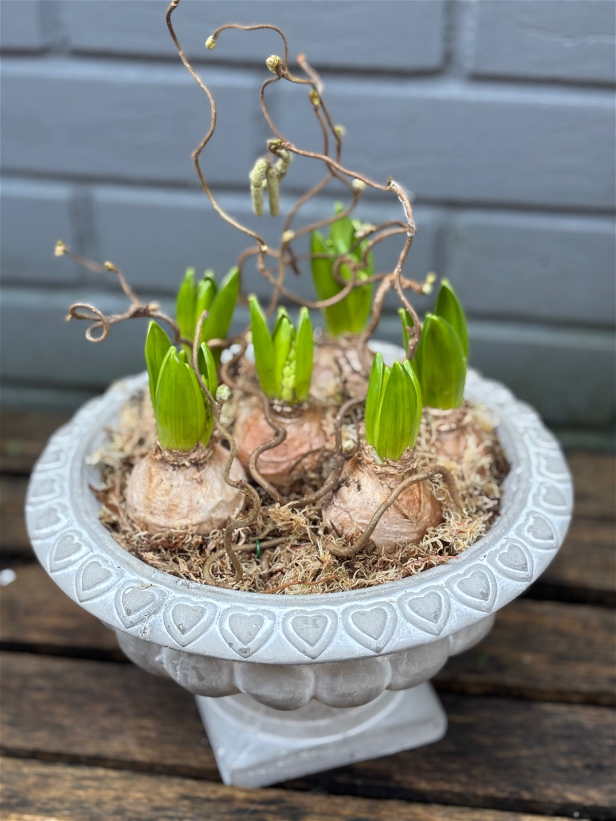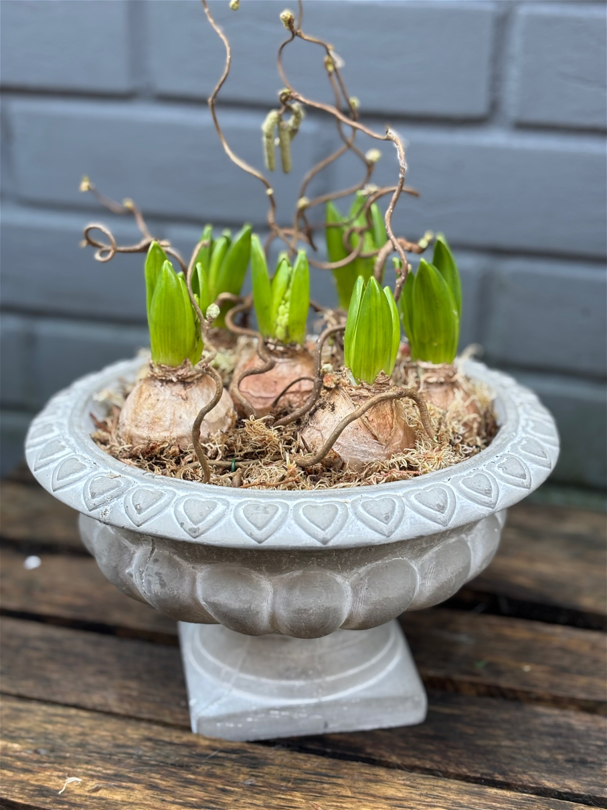 A stone footed bowl full of beautiful scented white pearl hyacinths, a gorgeous gift suitable for any flower lovers coffee table!