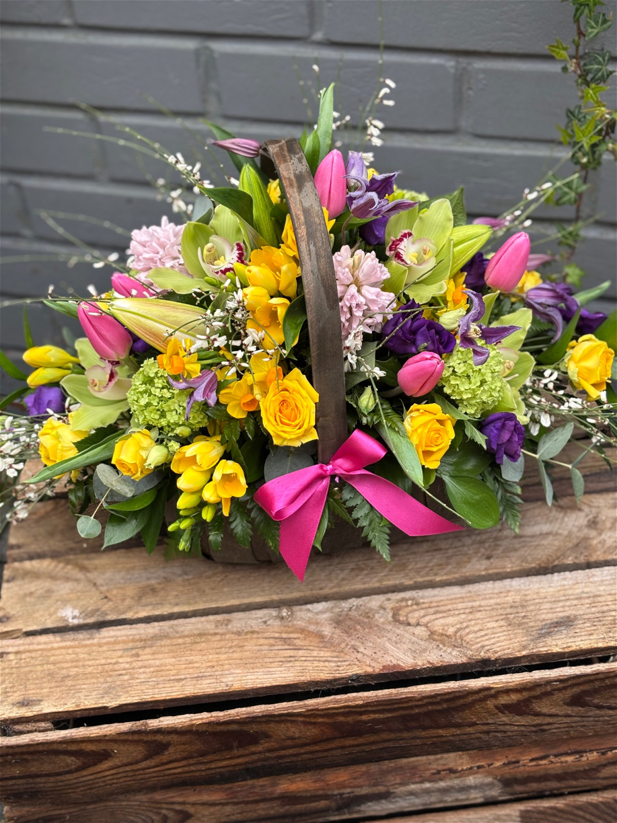 ** Please note; Baskets will differ from those photographed. Photos are for display purposes only. The style of the bouquet will remain the same. Flower choice and colour may differ.**